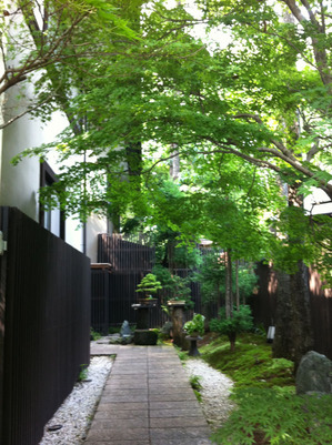 石畳を歩いていくと、また雰囲気が変わって、夏もみじがキラキラして綺麗